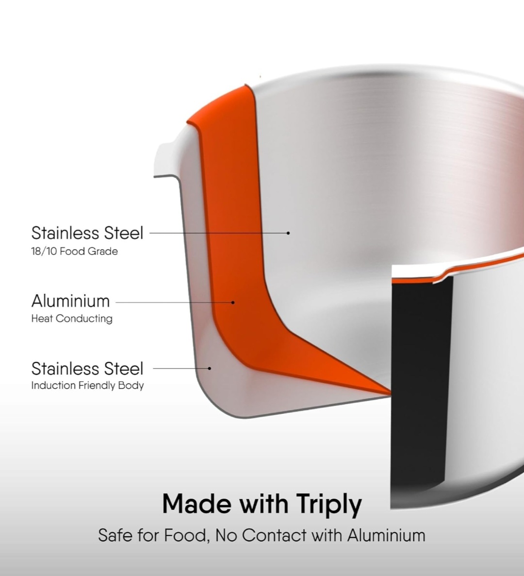 1.5L Triply Cooker, Stainless Steel, Induction Compatible