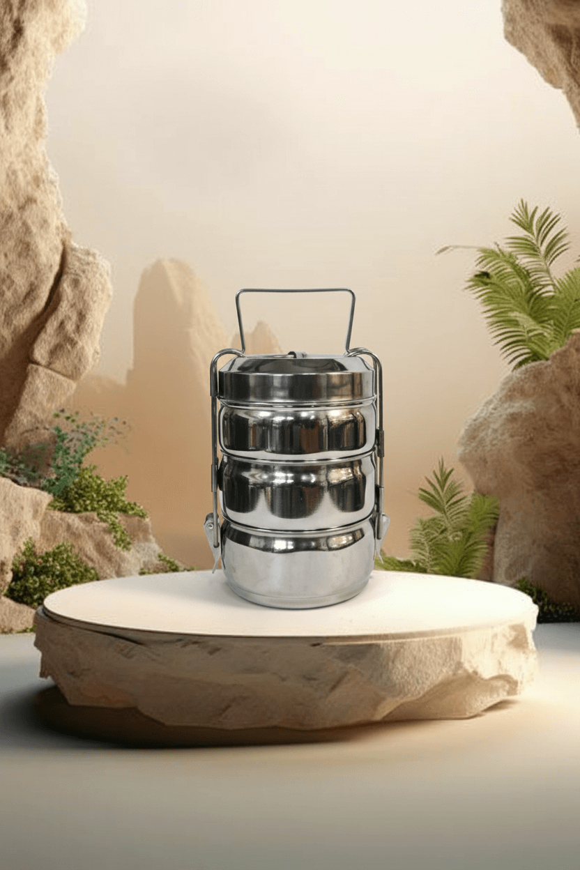 Durable stainless steel lunch box for kids and adults, featuring a secure clip closure and leak-proof design. Perfect for keeping your food fresh and safe on the go. Enjoy reliable mealtimes with this convenient and stylish tiffin.