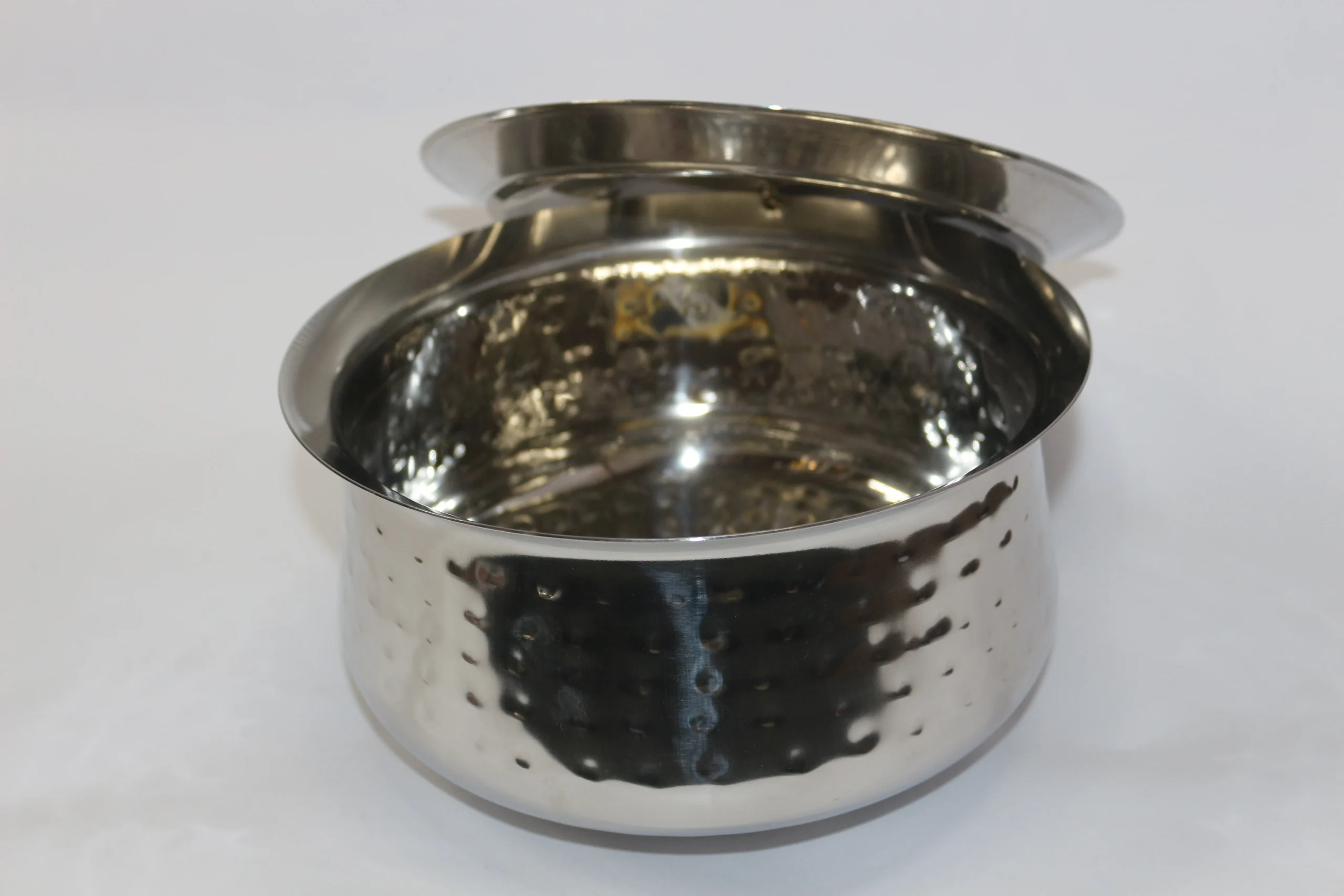 A 5L stainless steel handi deep cooking pot from Narmada Industries, compatible with induction and gas cooktops. Built for durability and even heating, this pot is perfect for everyday use and special occasions. Enjoy reliable performance and convenient cooking.