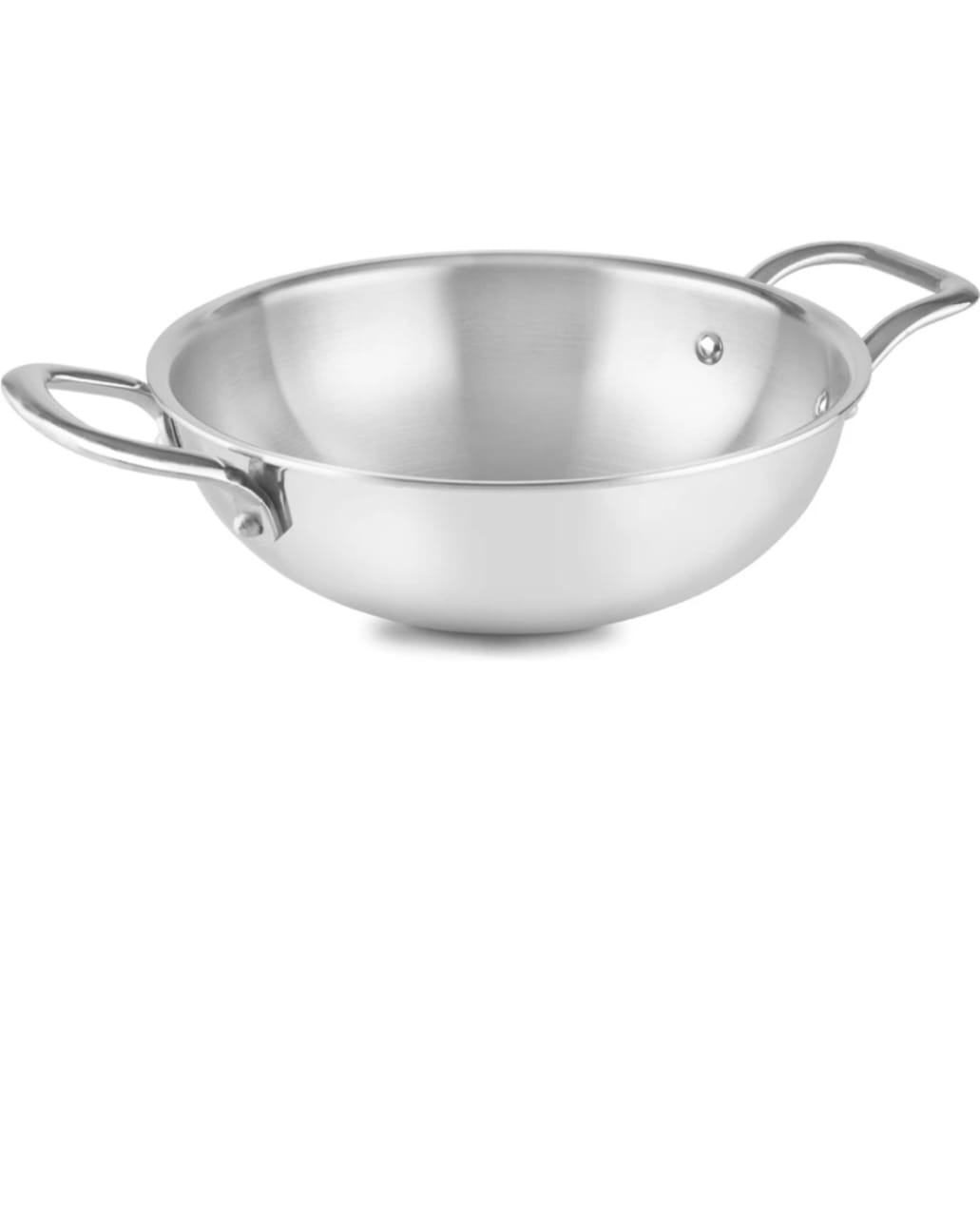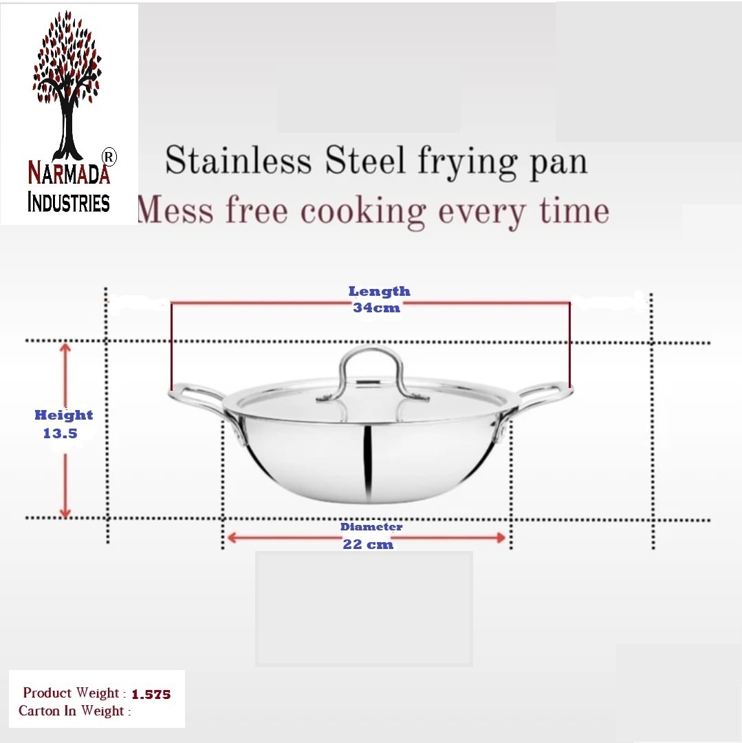 The Narmada Industries 24cm stainless steel induction kadai is perfect for everyday cooking. Induction compatible, this versatile cookware ensures even heat distribution for effortless cooking, whether it’s a quick weeknight meal or a weekend feast. Durable and easy to clean.