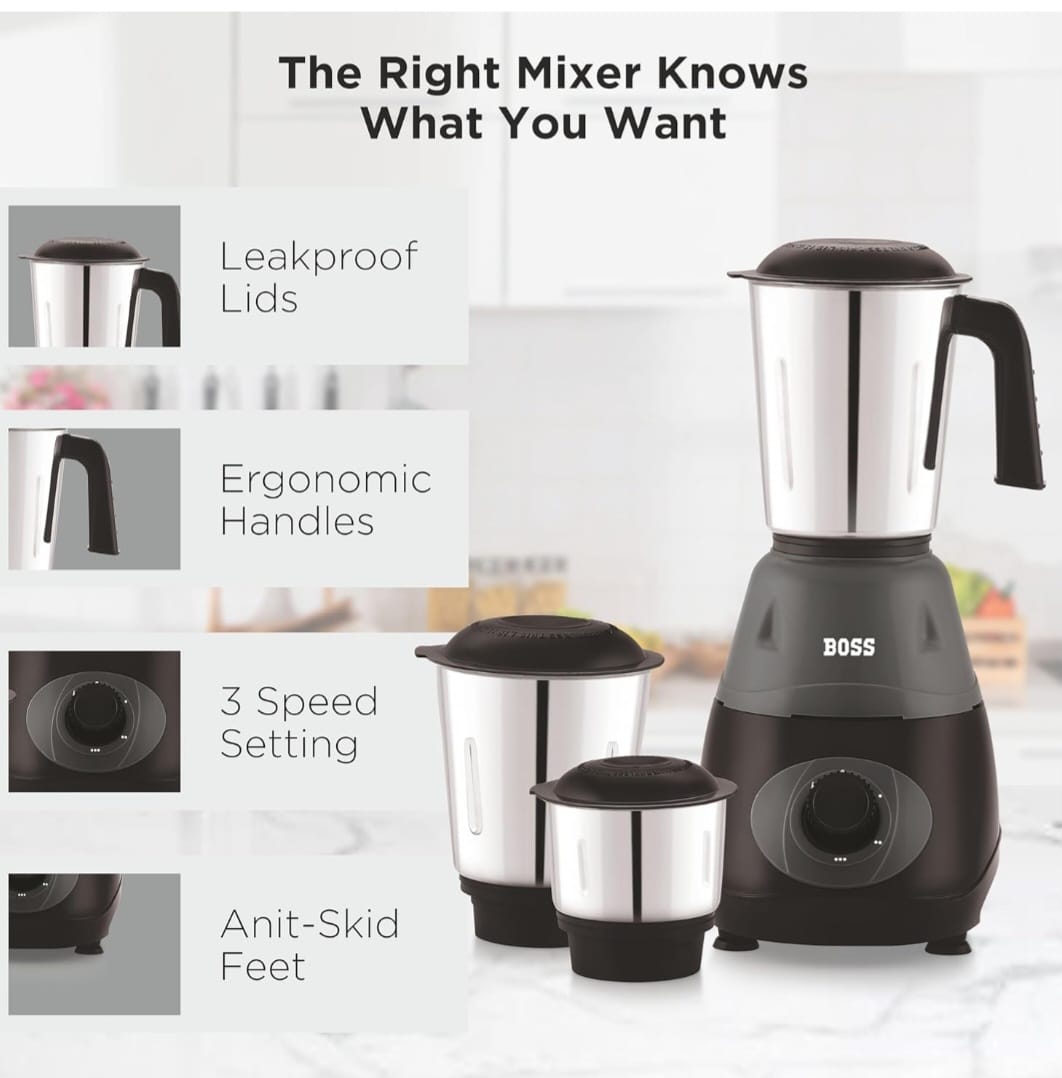 Be the first to review “Narmada Industries Boss Bravo 500W Mixer Grinder With Powerful 500wMotor Unique Flow Breaker Design & Overload Protection (3 Stainless Steel Jars, Grey) for Kitchen”